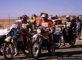 J’ai roulé toute la nuit, à 4.000 tours/minute, environ 40kms/h… ne ressentant absolument aucune angoisse… je roulais en fixant la piste dans le faisceau du phare, j’avais les étoiles au dessus, l’immensité devant moi… l’infini… Vers minuit, j’ai aperçu un feu au loin et m’en suis approché… il y avait un camion avec quelques hommes, dont l’un préparait le thé à la menthe… le thé-man m’a proposé de me joindre à eux… ce que j’ai accepté volontiers… la fraternité du désert… Une demi-heure plus tard, je suis reparti le cœur gonflé de fraternité et de force… Je pensais… rien n’est grave… la Vie est belle puisque j’avance toujours… Je suis arrivé à l’aube à Borj-Moktar, j’ai pointé pour le départ de l’étape, prenant 15 heures de pénalité, puis j’ai acheté le moteur d’un gars qui craquait moralement et voulait rentrer en France… nous l’avons remonté dans mon cadre pendant la journée…