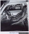 Sur le plan des aménagements intérieurs, la banquette arrière a été supprimée. Un emplacement a été agencé derrière les sièges avant pour les deux roues de secours et les jerricans. A ce sujet, la Rancho n’avait pas de réservoir supplémentaire mais partait avec 3 jerricans de 20 litres d’essence (120 litres au total) et 6 jerricans de 10 litres d’eau potable. Comme dit précédemment, il y avait les deux roues complètes derrière, plus 4 paquets de chambres à air et deux pneus sur la galerie...Excès de prudence ne nuit pas !!! Quoique, on verra plus tard ! Enfin, pour continuer avec l’habitacle, des coffres en aluminium compartimentés ont été installés en arrière de ce volume (sièges et roues) afin d’obtenir un centrage maximum des poids entre les deux essieux et limiter le porte-à-faux. Deux panneaux de contre-plaqué ont été aménagés au dessus de ces rangements pour constituer une surface de couchage. Enfin, deux sièges baquets ont été boulonnés directement sur une plate-forme tubulaire au niveau de l’habitacle (avec harnais) pour assurer une sécurité absolue en cas de choc.