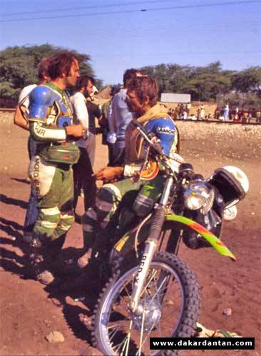 "Un coupeur de bois, un convoyeur de yachts, un publicitaire, un globe-trotter et un étudiant. On ne les prenait pas tellement au sérieux, ces « grenouilles ». Des joyeux drilles, oui,des spécialistes de l’enduro, non !!. Quant à leur pari de tous rallier Dakar, aucune chance à priori !!! Et pourtant...