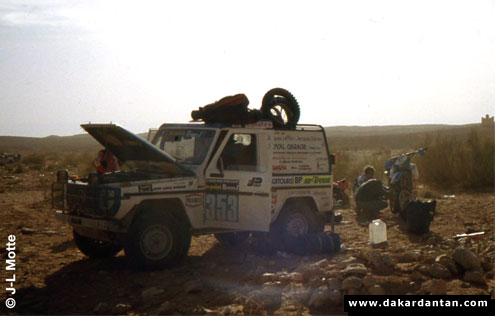 - Véhicule d'assistance ne rentrant pas dans le classement final. Les véhicules d'assistance étaient reconnaissables à leur numéros écrits en blanc sur fond bleu.